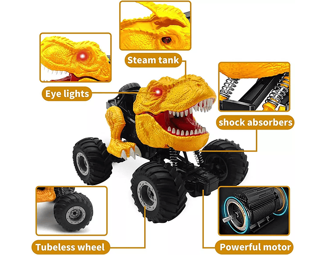 Camión Dinosaurio 2.4 GHz con control remoto, tira Spray Recargable